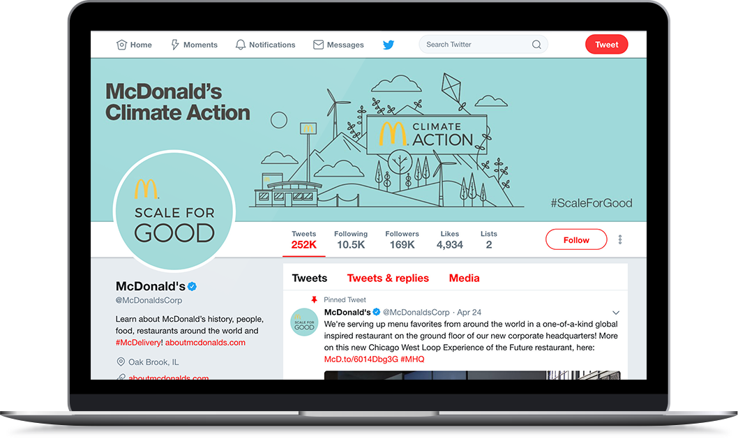The team helped McDonald's announce their Scale for Good initiative by creating collateral to be shared with stakeholders, paid web banners, and organic social graphics.